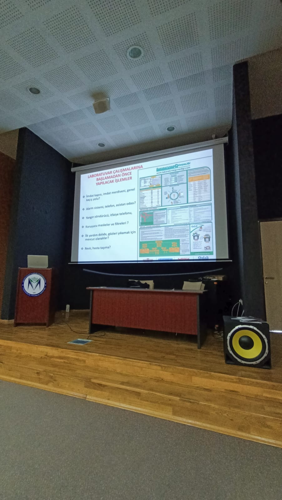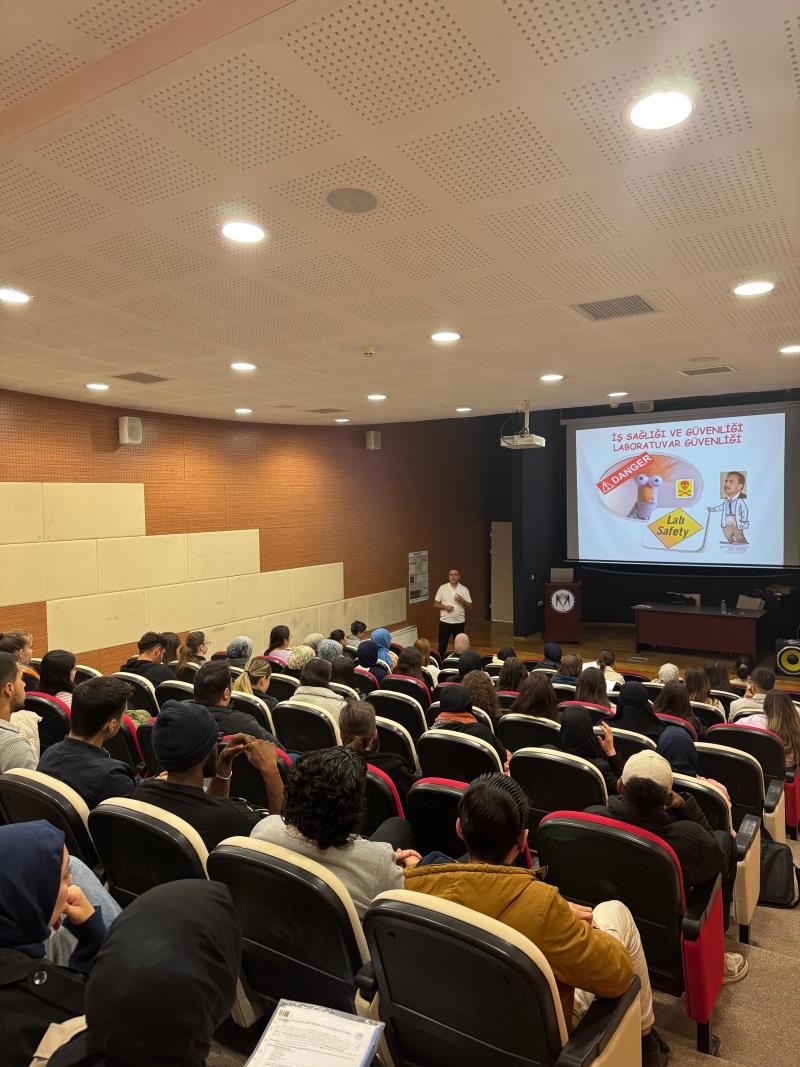 Bölümümüz Laboratuvar ve İş Sağlığı Güvenliği (İSG) Komisyonu tarafından 15.10.2025 tarihinde çarşamba günü saat 12.30’da Mühendislik Fakültesi Konferans Salonu’nda Bölümümüz lisans ve lisansüstü öğrencilere İSG ve Laboratuvar Güvenliği Eğitimi verilmiştir.